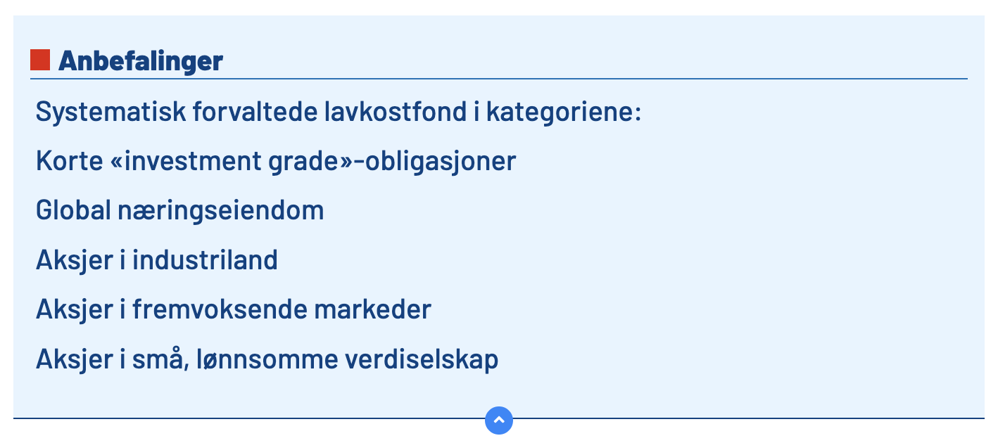 – Systematisk forvaltede, bredt diversifiserte fond med lave forvaltningskostnader innen følgende aktivaklasser:Korte obligasjoner av høy kredittkvalitet, global næringseiendom, aksjer i industriland, aksjer i fremvoksende markeder og aksjer i små, lønnsomme verdiselskap, svarer adm. direktør Richard Stott i Connectum Capital Management.